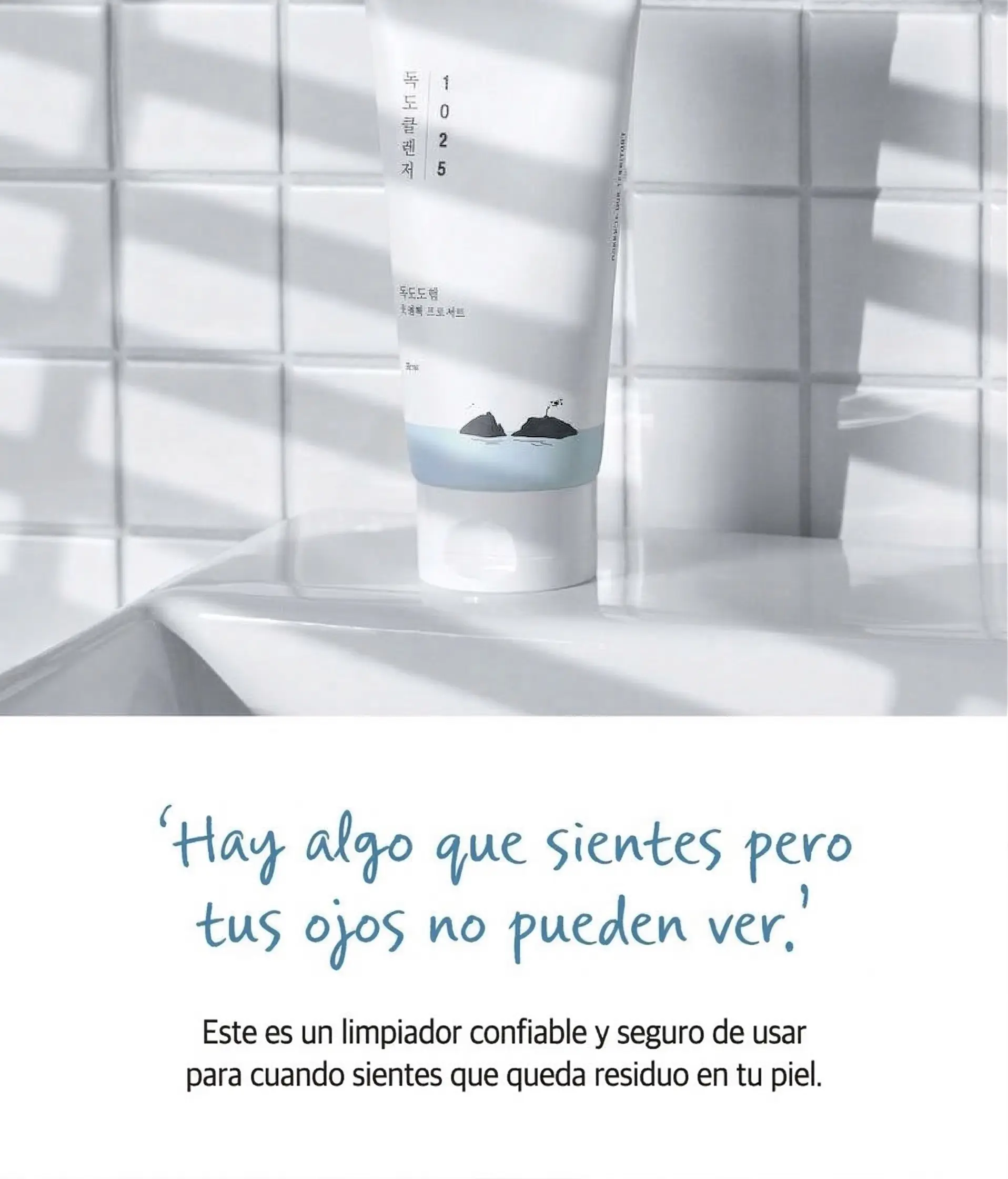 Si buscas un limpiador facial coreano que limpie bien pero se sienta más amable con la piel, el ROUND LAB 1025 Dokdo Cleanser es una de las opciones más completas para una rutina diaria. La marca lo describe como un limpiador ligeramente ácido con pH 5.0–6.0, textura densa de crema a espuma y enfoque en purificar la piel sin sobre resecarla. También afirma que ayuda a retirar impurezas, exceso de sebo y residuos, mientras contribuye a mantener un equilibrio saludable de humedad.