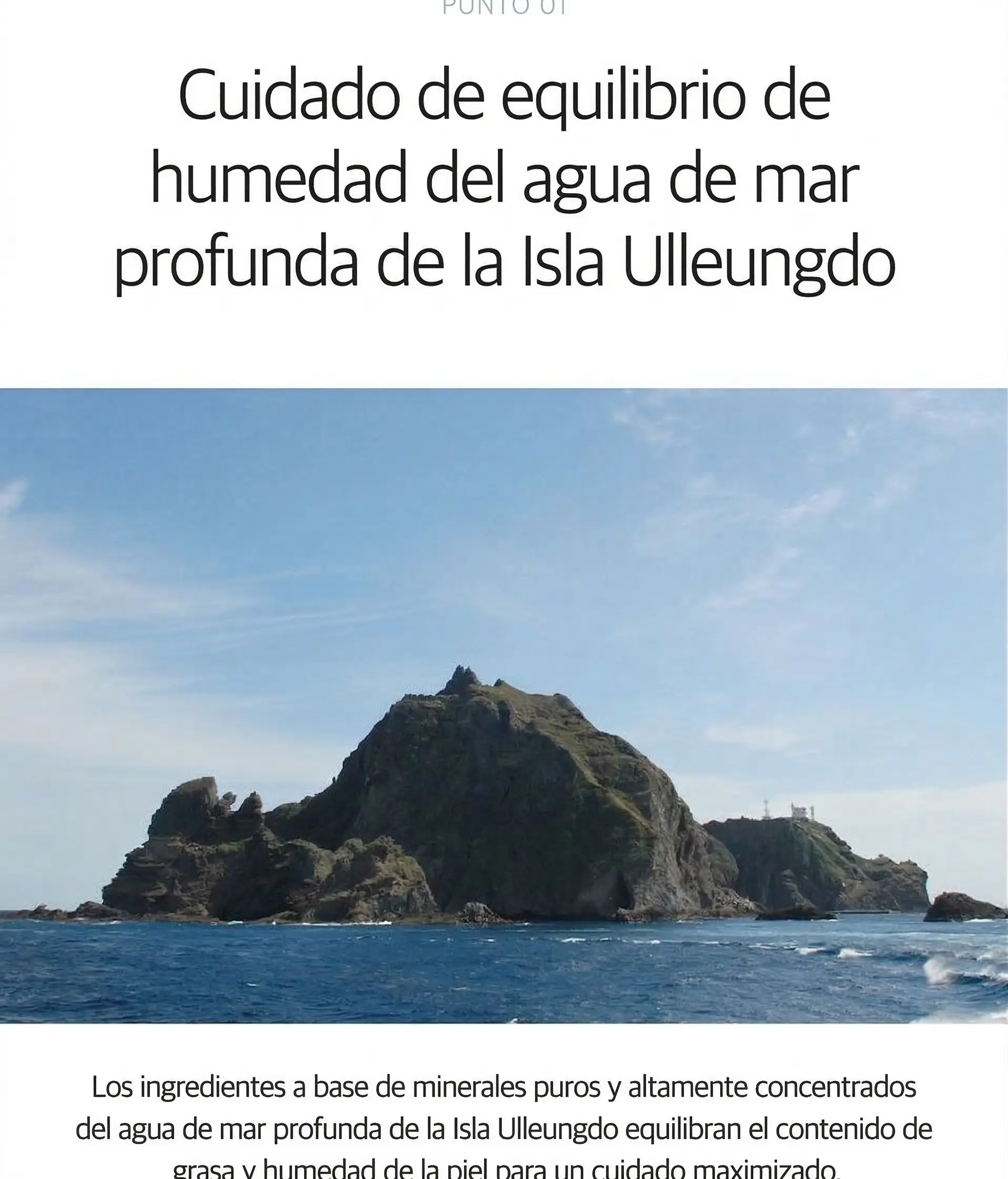 Agua marina profunda de Ulleungdo: la base icónica de la línea Dokdo, asociada por la marca al equilibrio mineral e hidratación.